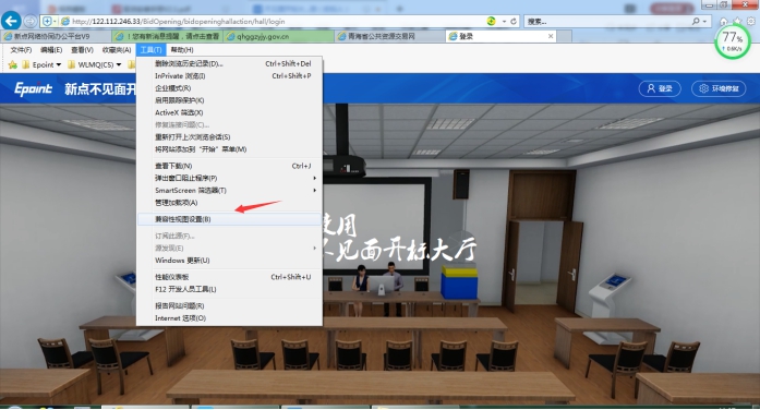 (1)打开IE浏览器http://www.qhggzyjy.gov.cn/ggzy/(青海省公共资源交易网),点击【远程异地开标系统】跳转到远程异地开标系统。