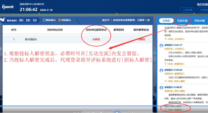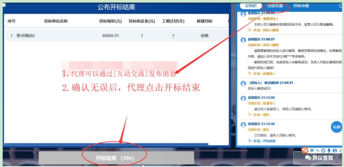 9.等待投标人远程解密,招标代理机构辅以文字互动。