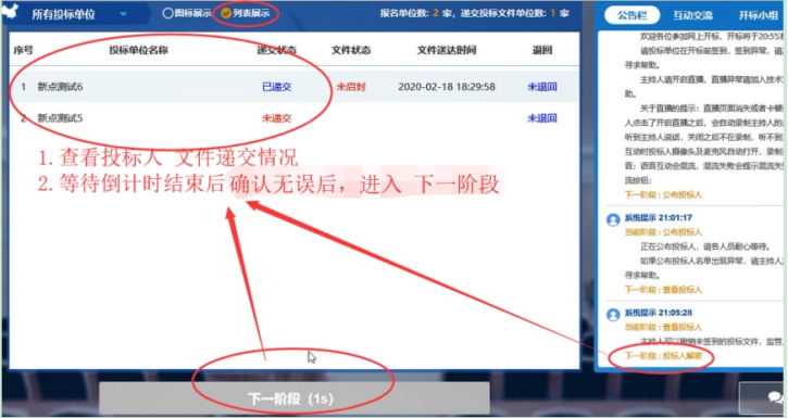 8.确认投标文件递交情况 ,确认投标人是否全部到场(可通过交流互动询问)