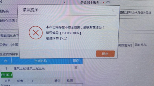 工程建设系统中招标代理在发布招标公告时提示“本次访问存在不安全隐患,请联系系统管理员”