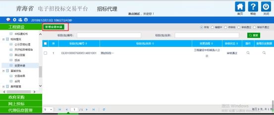 新增申请,选择申请类型,选择对应标段,发变更申请,变更申请发出后,对应的中标候选人公示或中标结果公告会被退回到编辑中状态,需代理自行去对应栏目下修改编辑新的发出。变更申请后,发出到网站上的信息为变更申请内容。