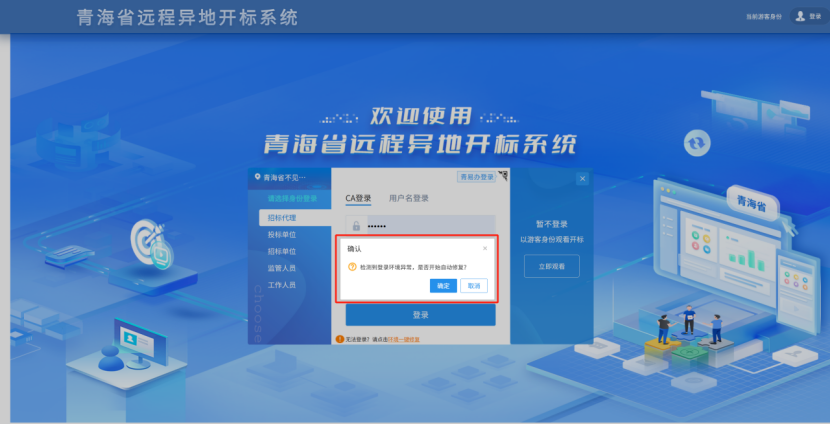 (2) 如已安装,请按“驱动安装手册2.1.PDF”中检测步骤进行CA锁检测,并查看是否能正常登录招投标系统,如果招投标系统能正常登录,则按照《远程异地开标操作手册》检查兼容性视图及可信站点是否设置。