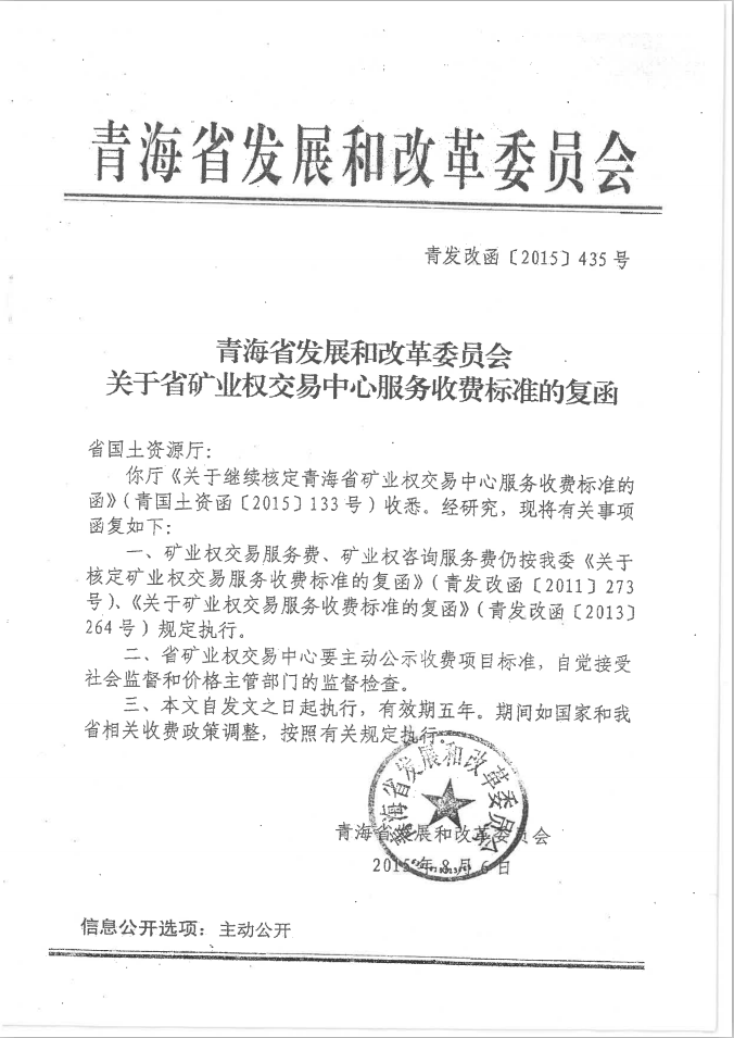 关于省矿业权交易中心服务收费标准的复函.pdf