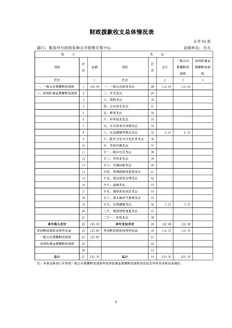 果洛州行政服务和公共资源交易中心2018年度部门决算