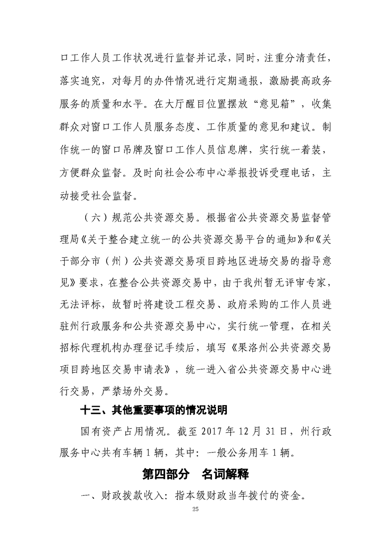 果洛州行政服务和公共资源交易中心2017年度部门决算