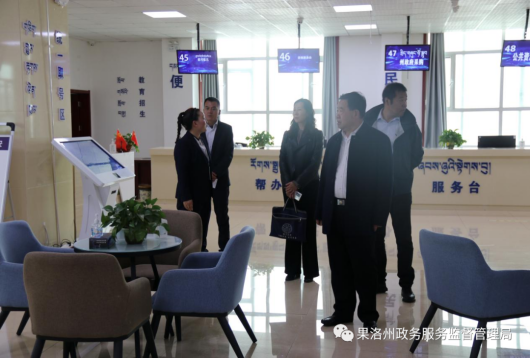 5月17日至18日,省政务服务监督管理局副局长刘延福一行赴果洛州开展实地考察调研,州政府副秘书长仁青东智、州政务服务监督管理局局长王海东等陪同调研。