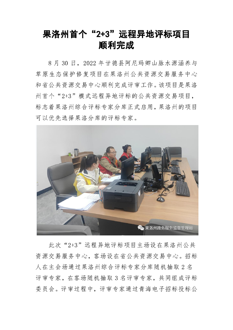 果洛州首个“2+3”远程异地评标项目顺利完成