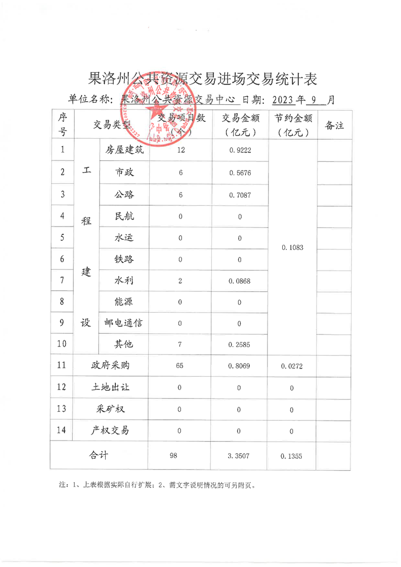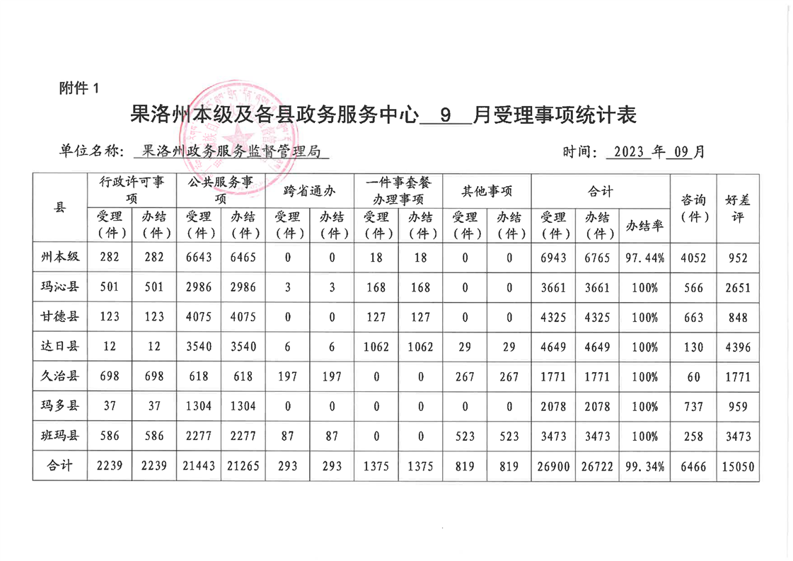 2023年9月份果洛州公共资源交易和政务服务办件情况
