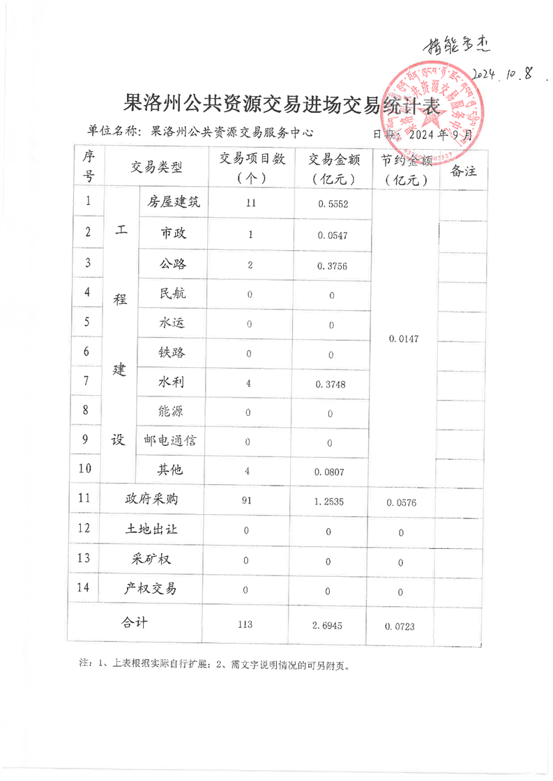 2024年09月份果洛州公共资源交易和政务服务办件情况