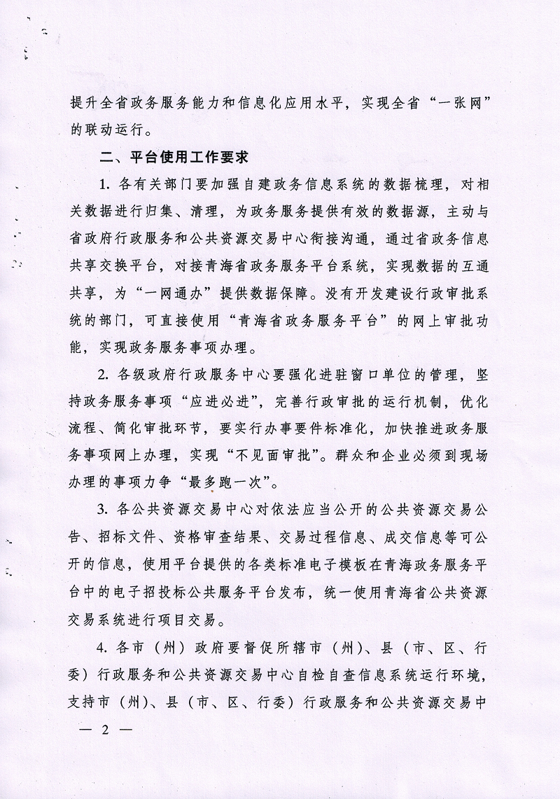 关于统一使用青海省政务服务平台实行全流程电子化交易的通知