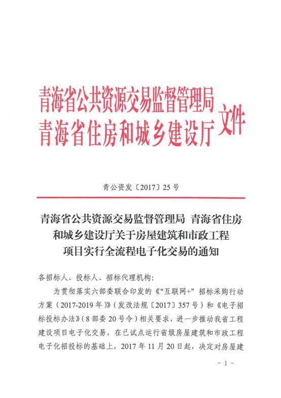 关于房屋建筑和市政工程项目实行全流程电子化交易的通知
