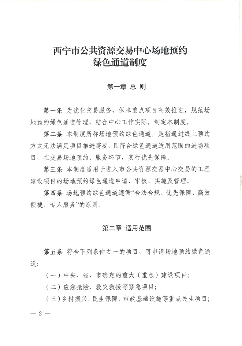 关于印发《西宁市公共资源交易中心场地预约绿色通道制度》的通知