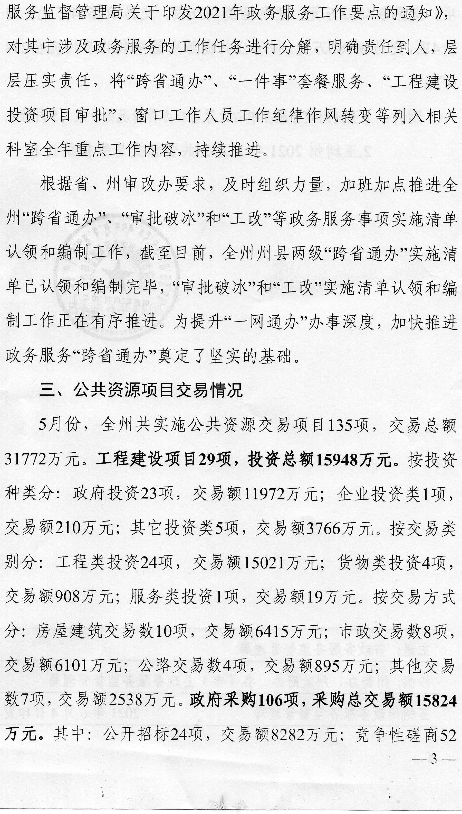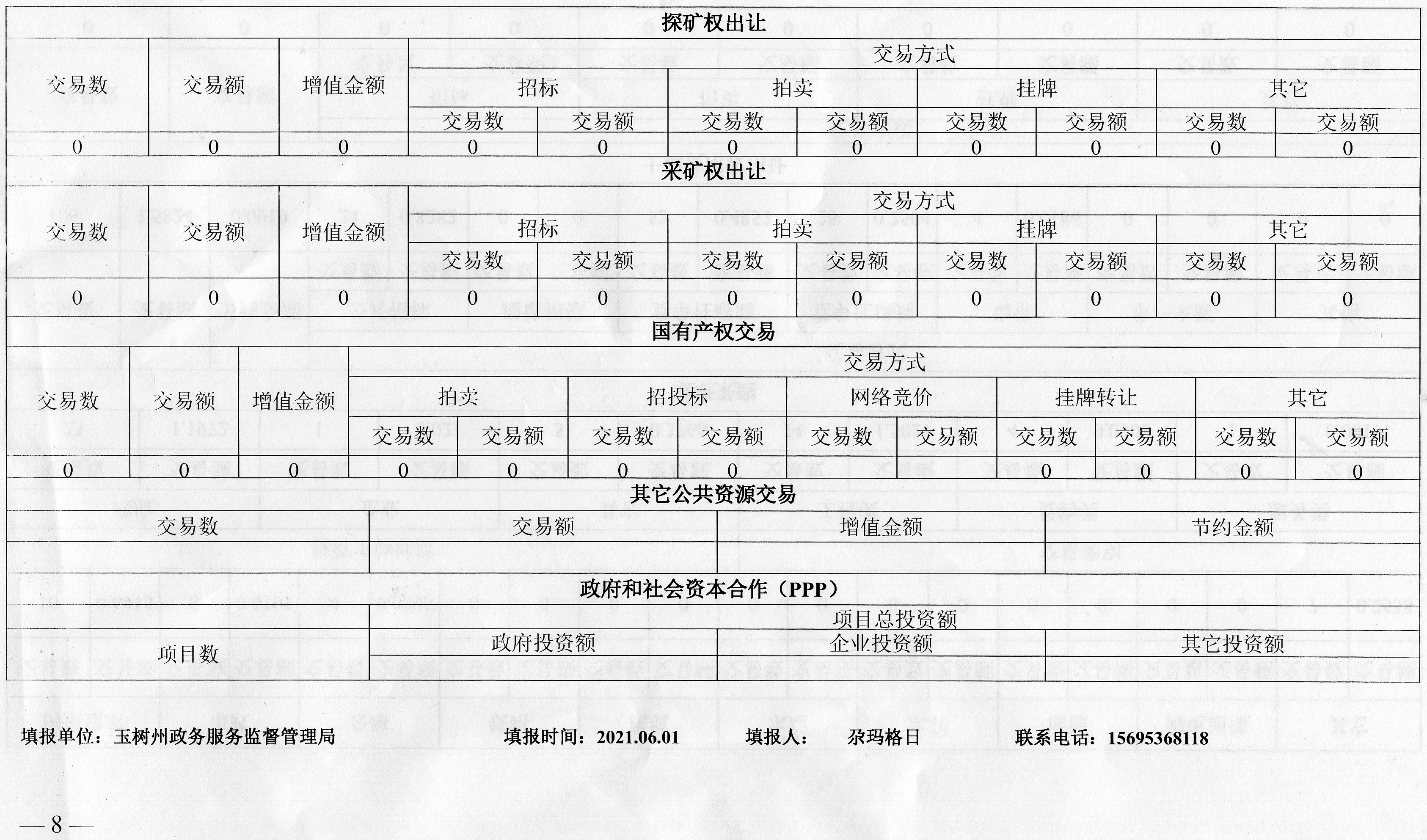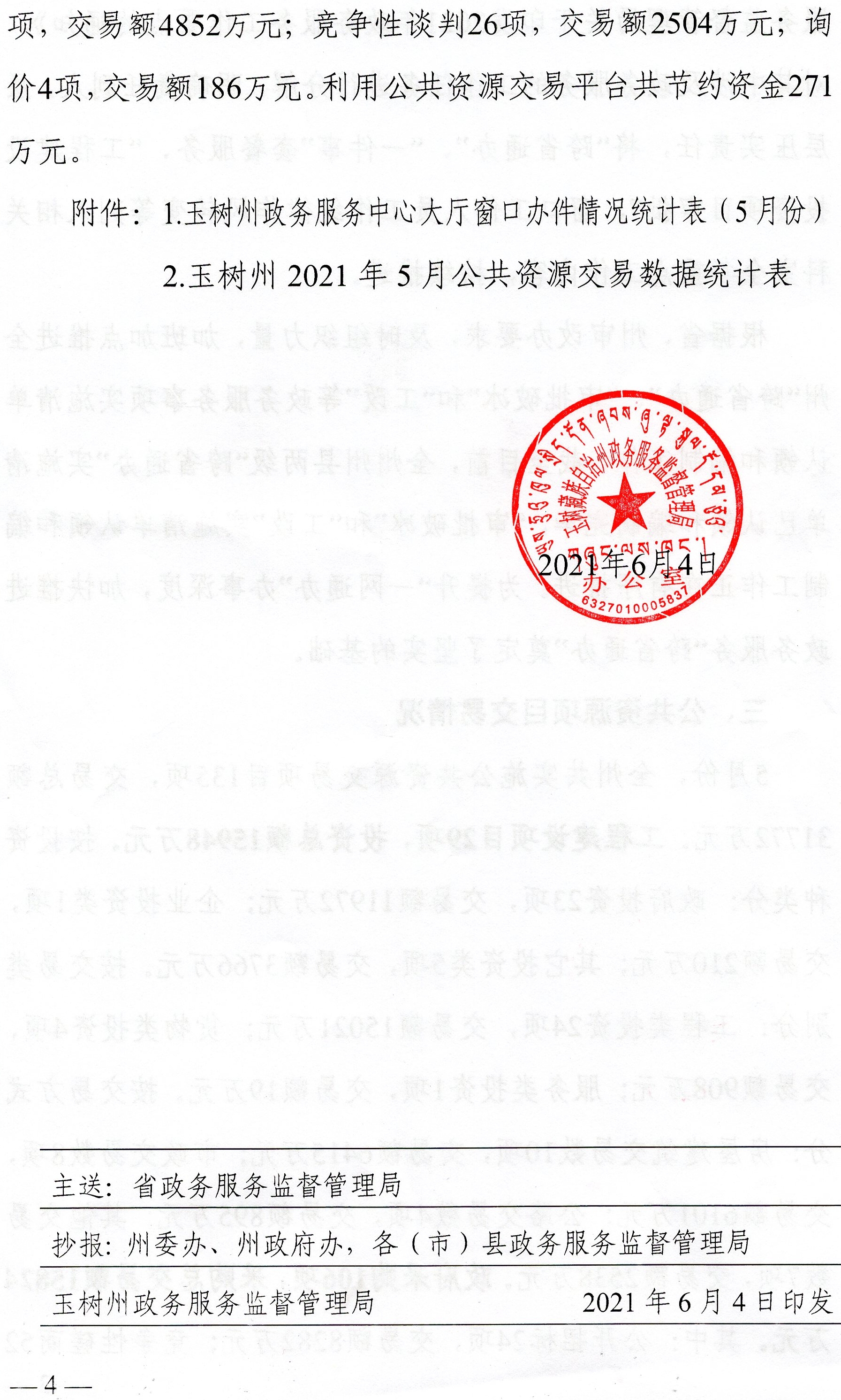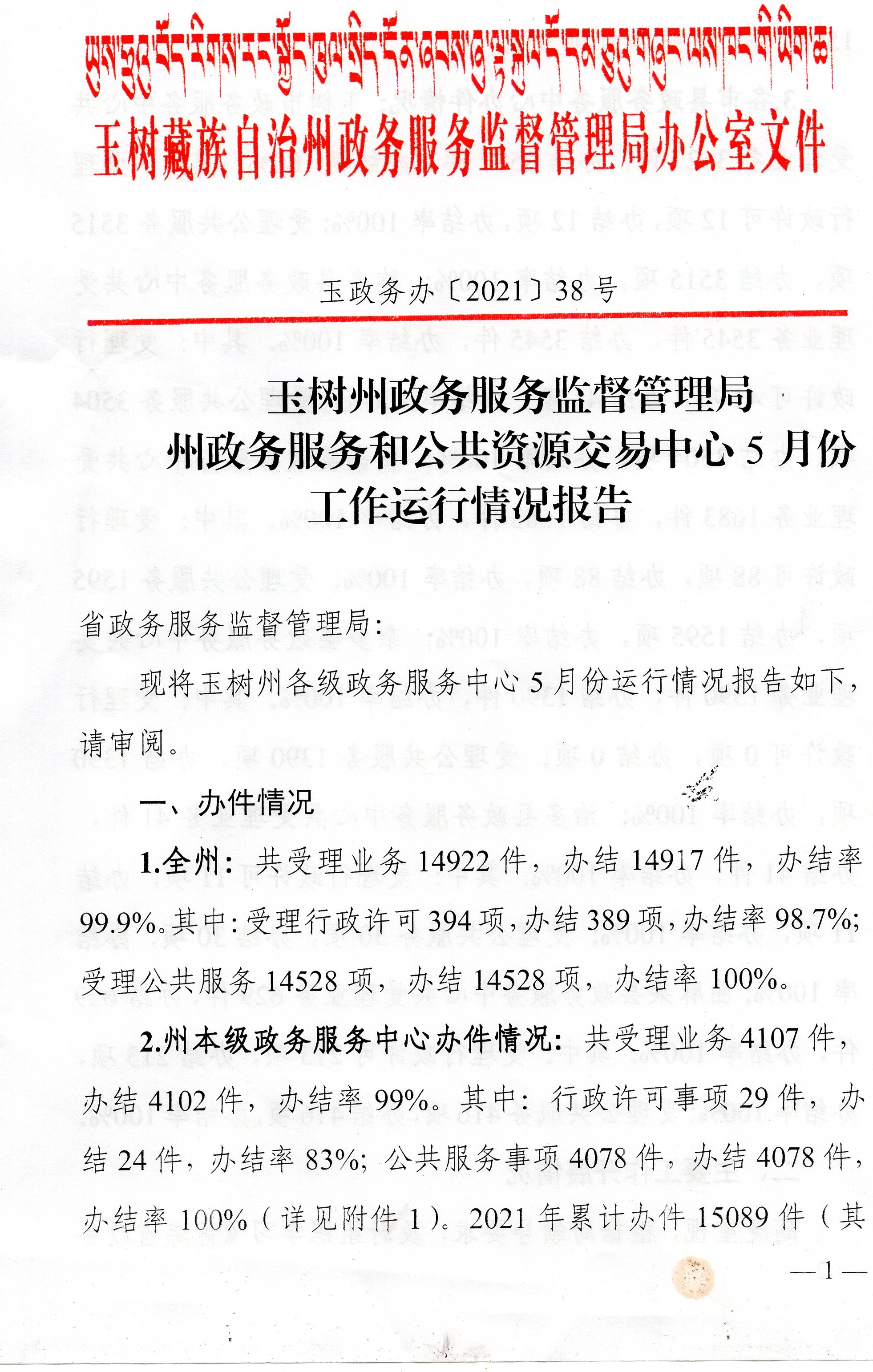 玉树州政务服务和公共资源交易中心5月份工作运行情况报告
