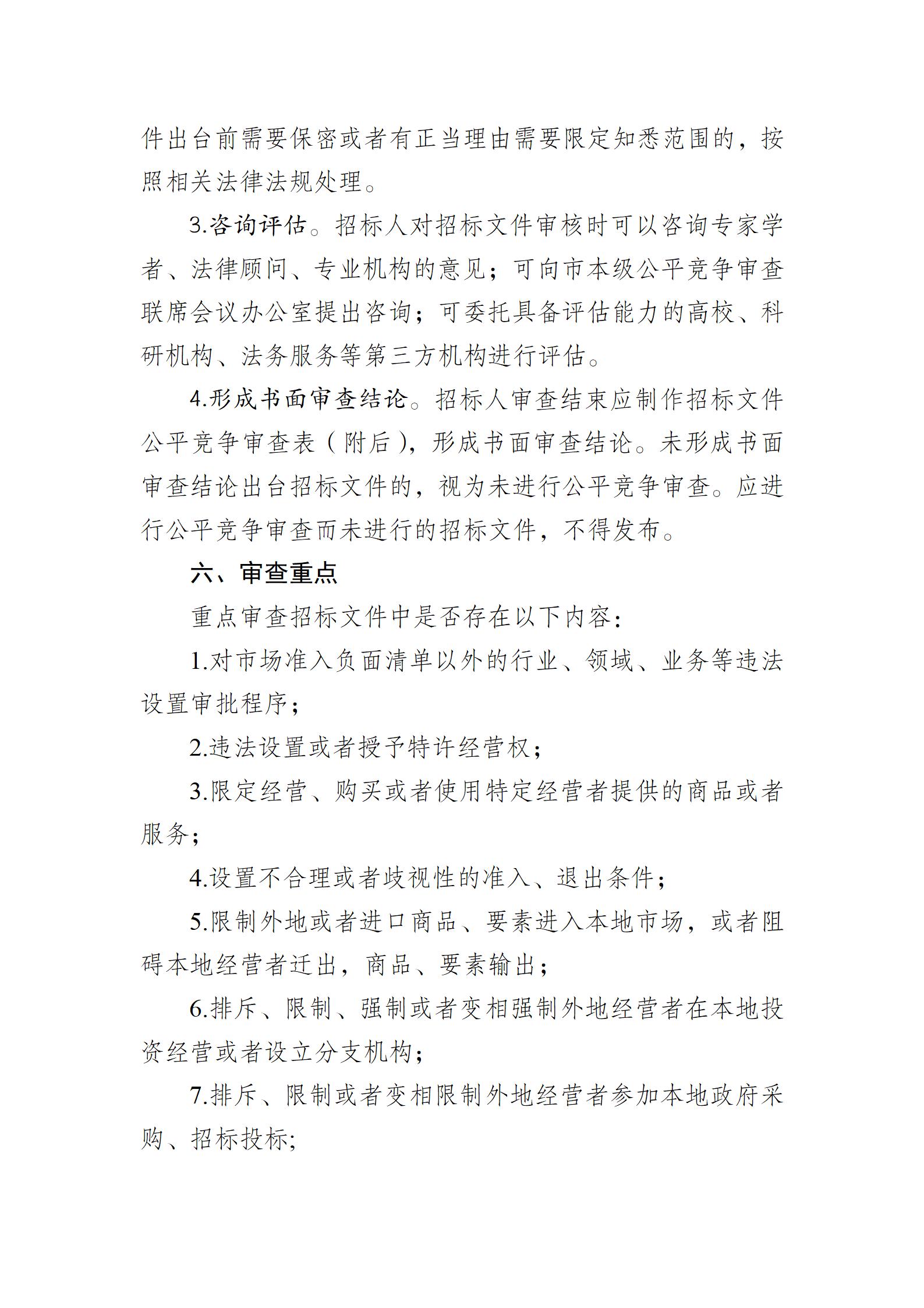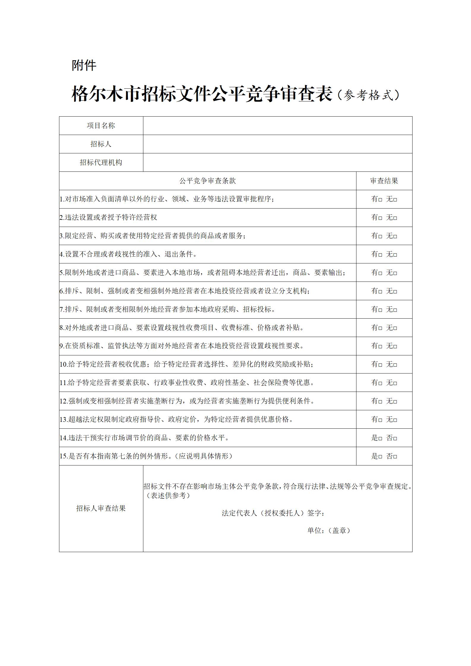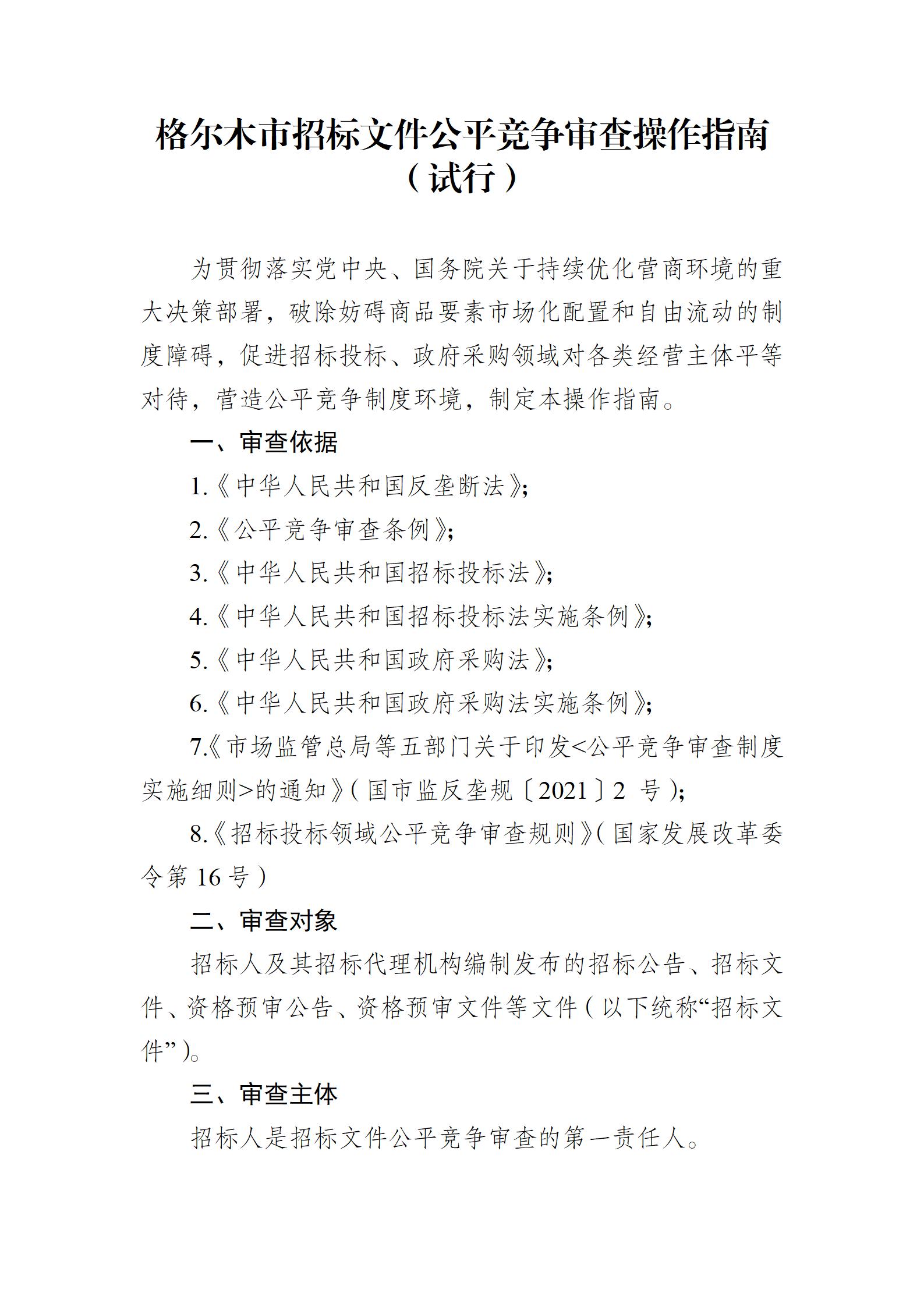 格尔木市招标文件公平竞争审查操作指南(试行)