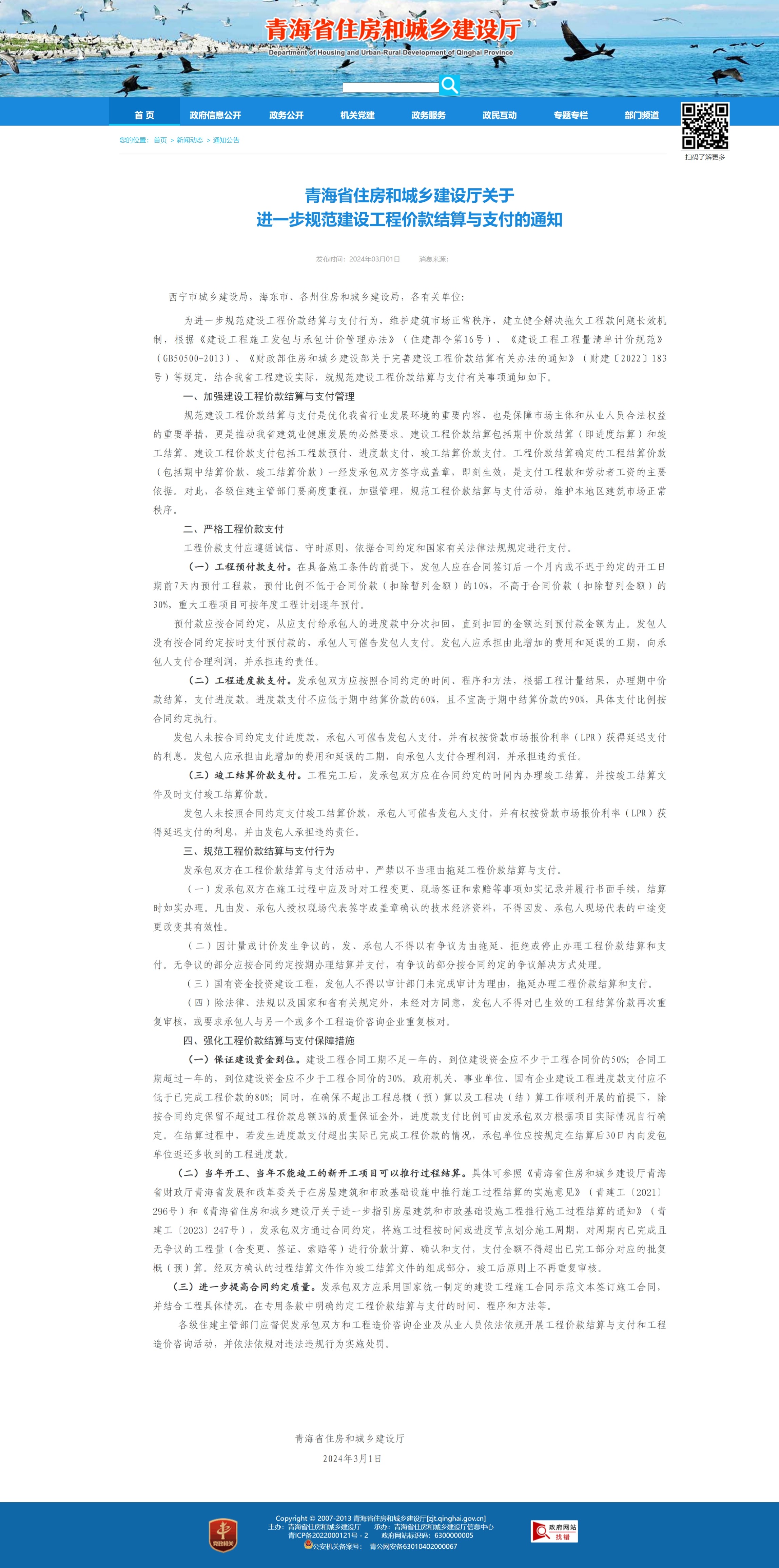 转发:青海省住房和城乡建设厅关于进一步规范建设工程价款结算与支付的通知