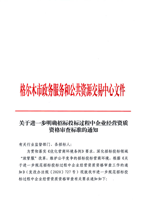 关于进一步明确招标投标过程中企业经营资质资格审查标准的通知