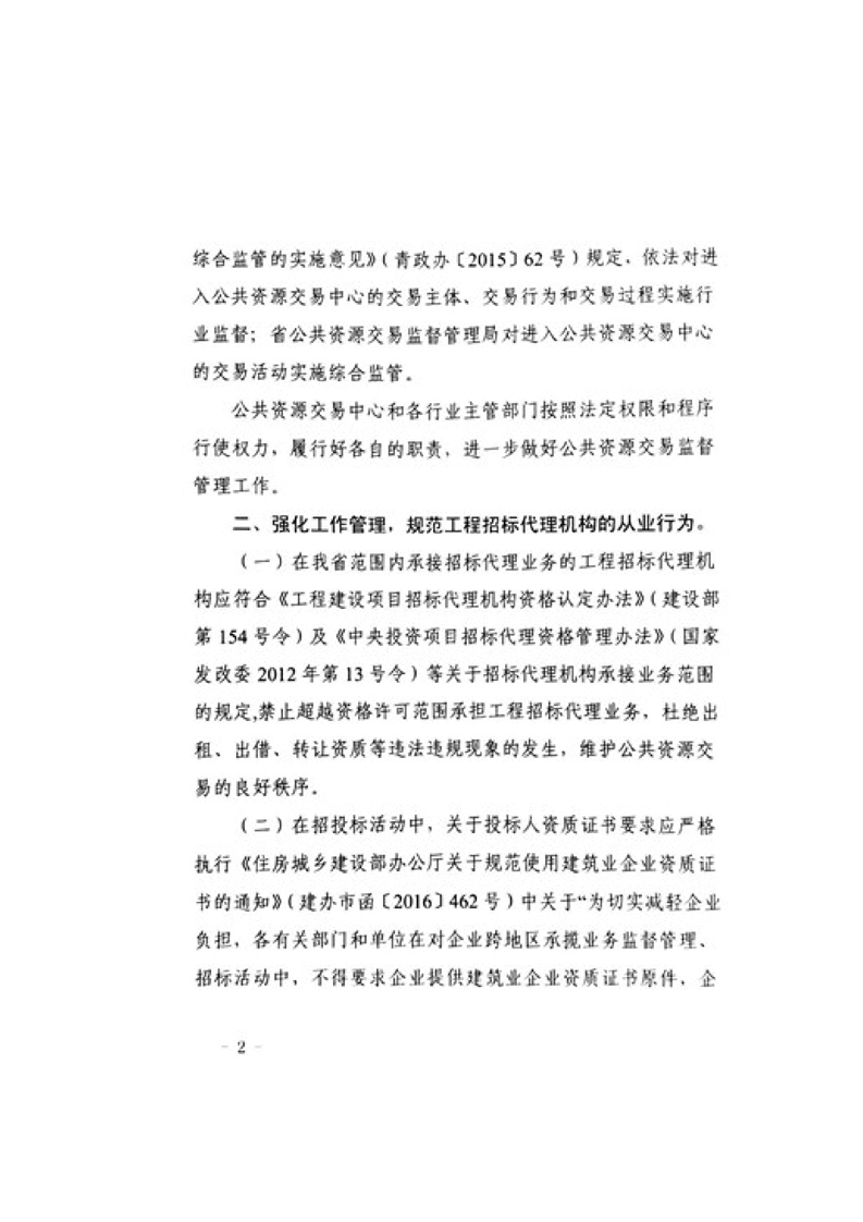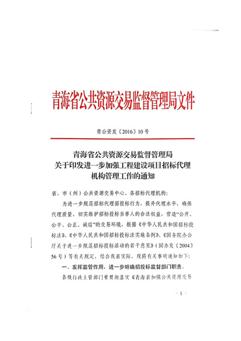 青海省公共资源交易监督管理局关于印发进一步加强工程建设项目招标代理机构管理工作的通知