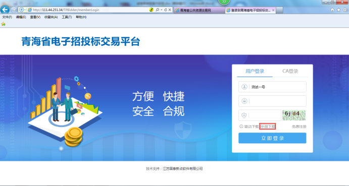 1、若已经注册过且CA锁已经激活,可直接登录系统