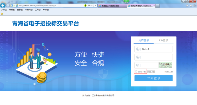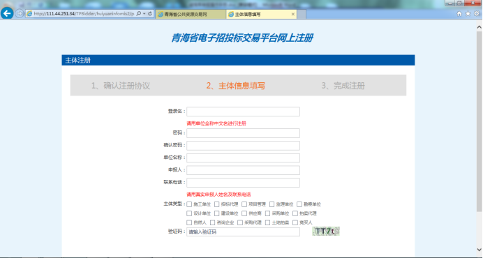 1、 登录至青海省公共资源交易网平台中,登录地址:http://111.44.251.34/ggzy/