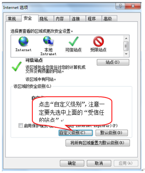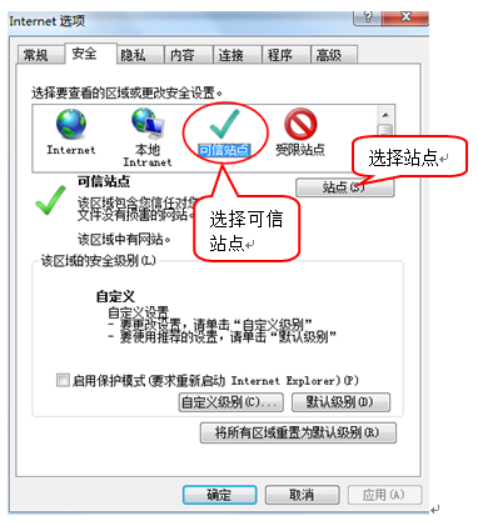 3、点击绿色的“受信任的站点”的图片,会看到如下图所示的界面:
