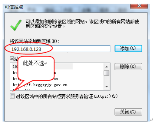 输入系统服务器的IP地址,格式例如:ggzy.weifang.gov.cn,然后点击“添加”按钮完成添加,再按“关闭”按钮退出。
