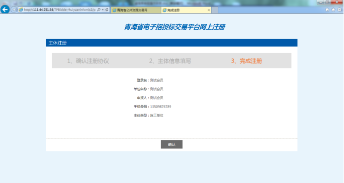 点击下一步之后,对所填写的信息进行确认;如下图所示: