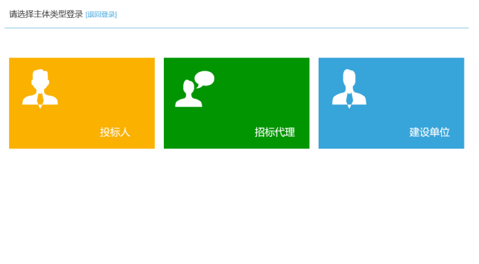 1、首次注册之后,就进入到信息的完善页面;如下图所示,选择登录的身份,下面以招标代理身份为例进行说明;