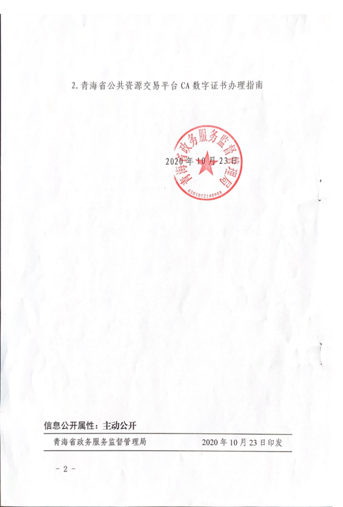 关于印发青海省公共资源交易平台主体信息数据库入库及CA数字证书办理指南的通知