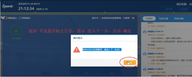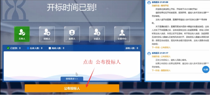 8.确认投标文件递交情况 ,确认投标人是否全部到场(可通过交流互动询问)