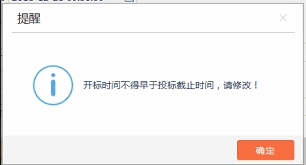 在编辑发送公告时会提示“开标时间不得早于投标截止时间”