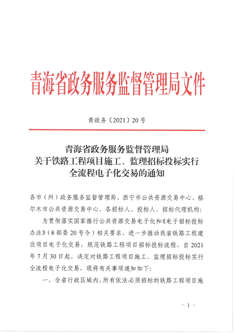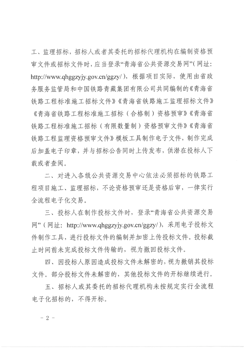 关于铁路工程项目施工、监理招标投标实行全流程电子化交易的通知