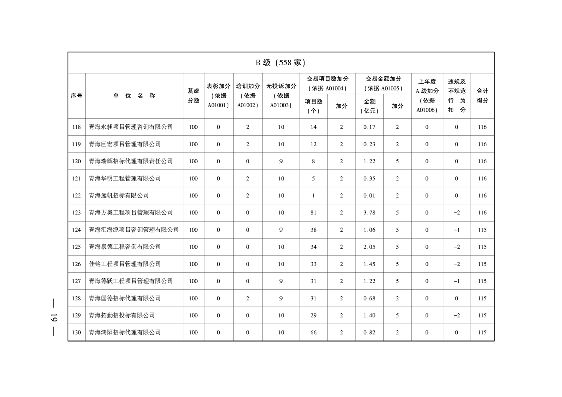关于2021年度青海省公共资源交易代理机构场内信用评价考核结果的通知