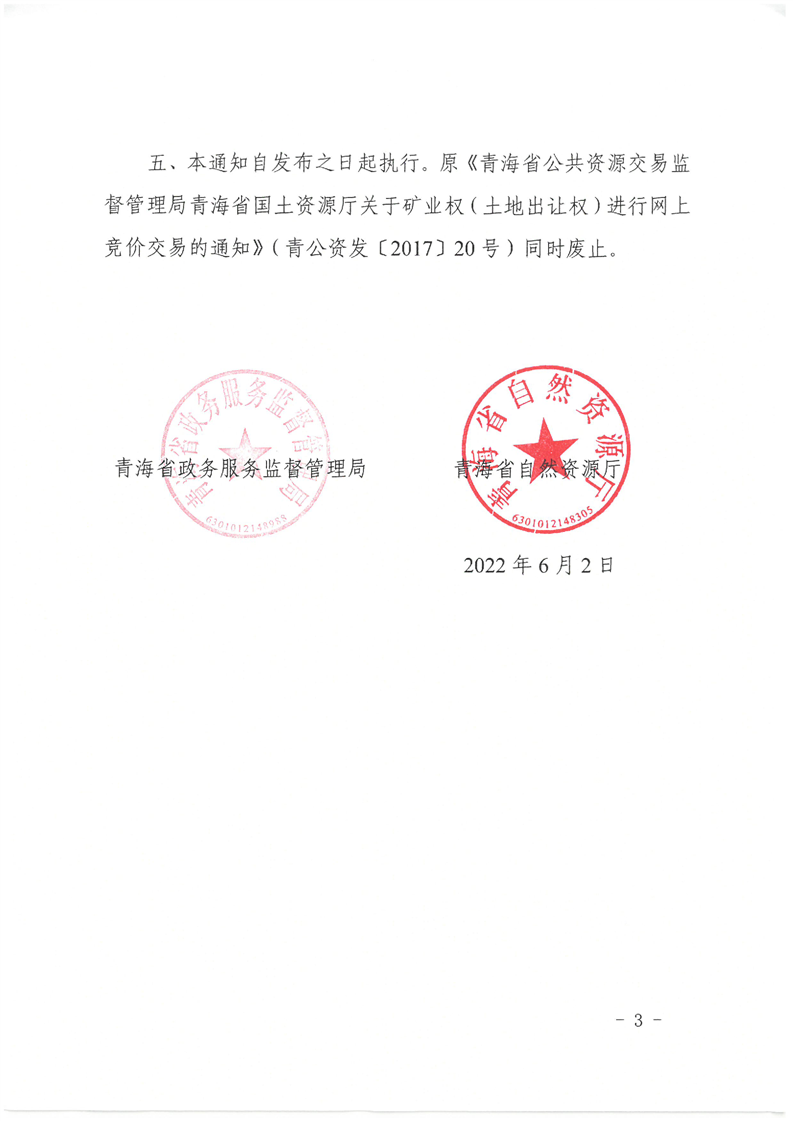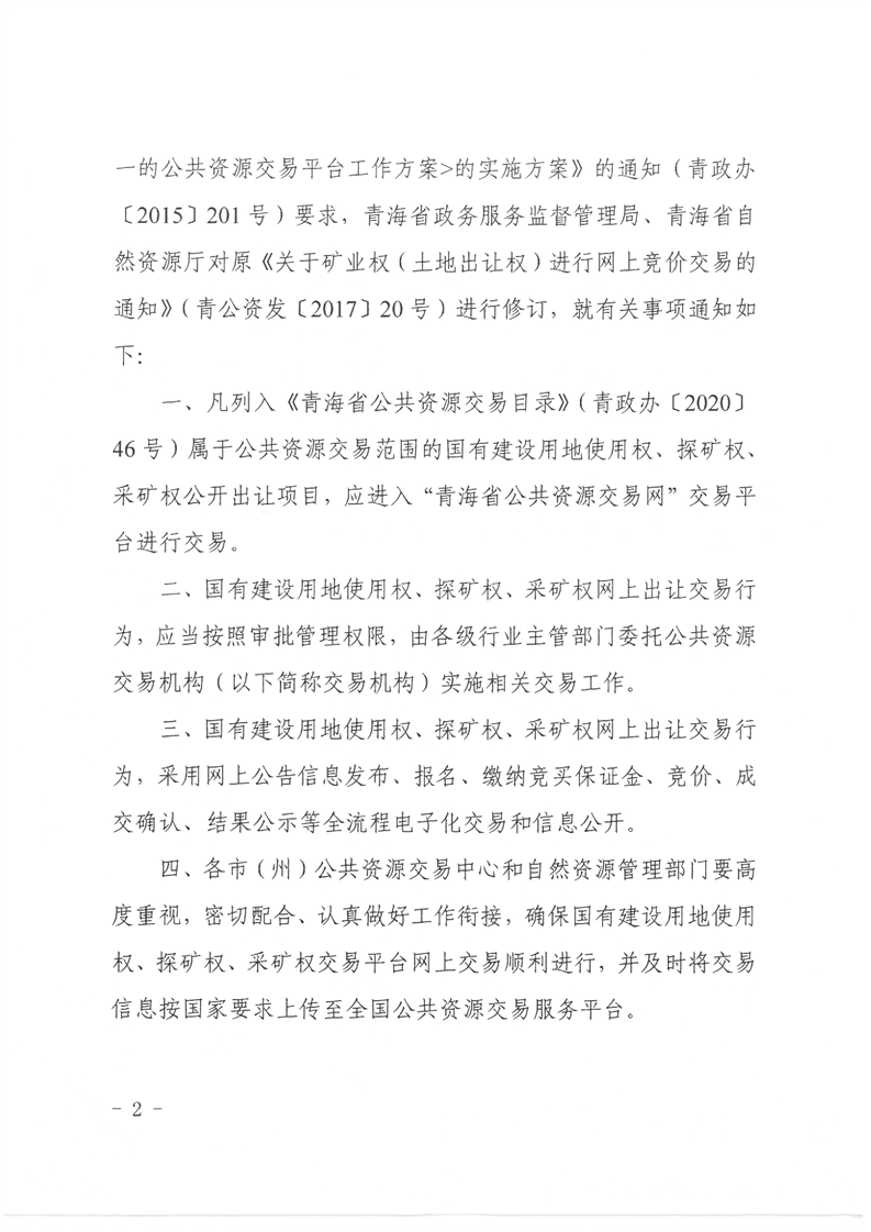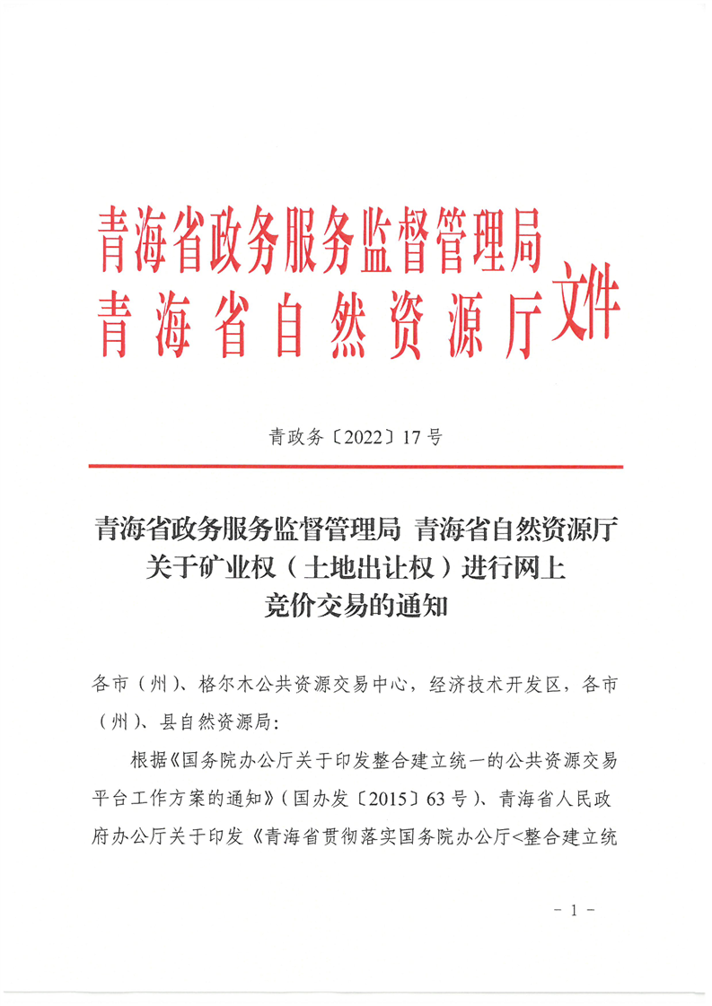 关于矿业权(土地出让权)进行网上竞价交易的通知