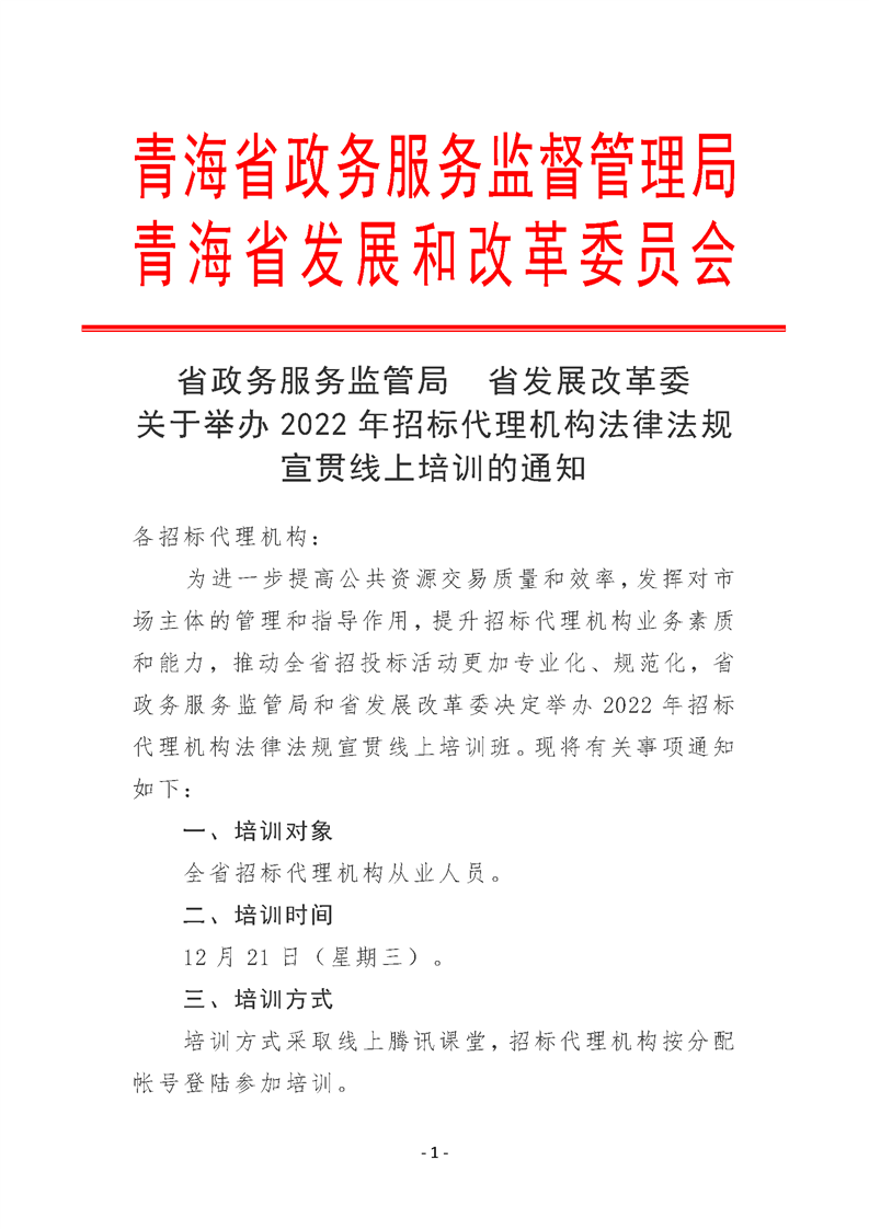 关于举办2022年招标代理机构法律法规宣贯线上培训的通知