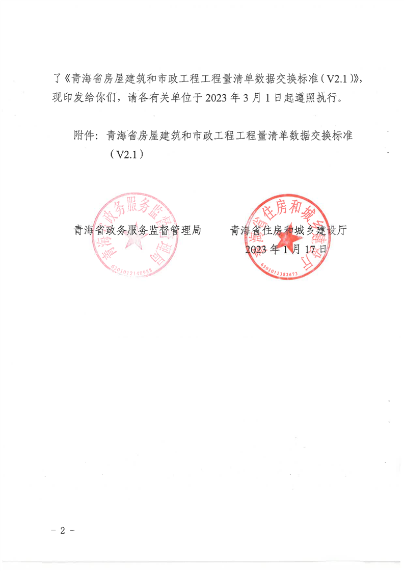 关于印发《青海省房屋建筑和市政工程工程量清单数据交换标准(V2.1)》的通知