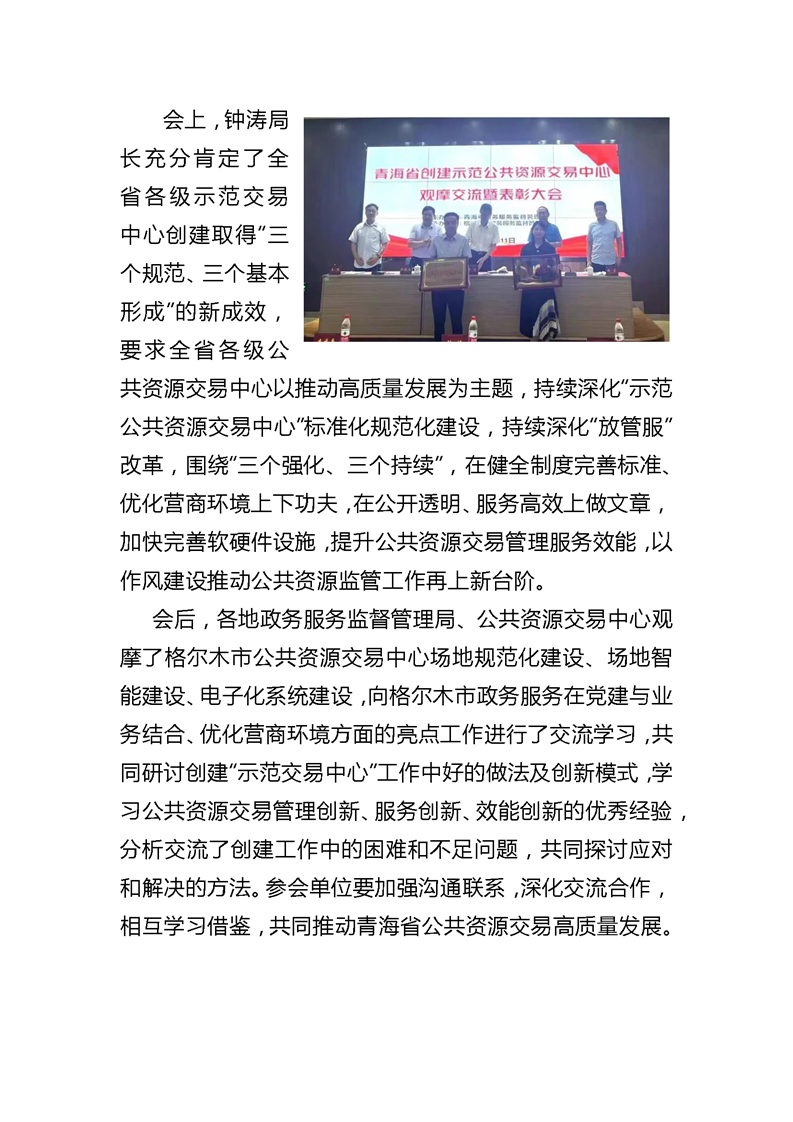 青海省示范公共资源交易中心观摩交流活动成功举办