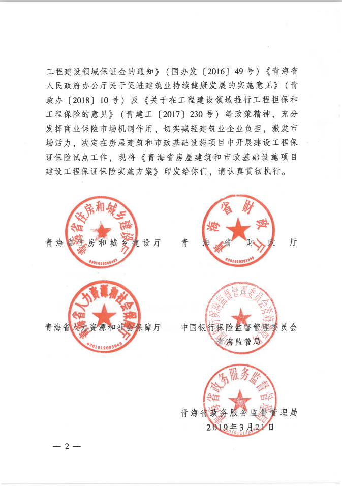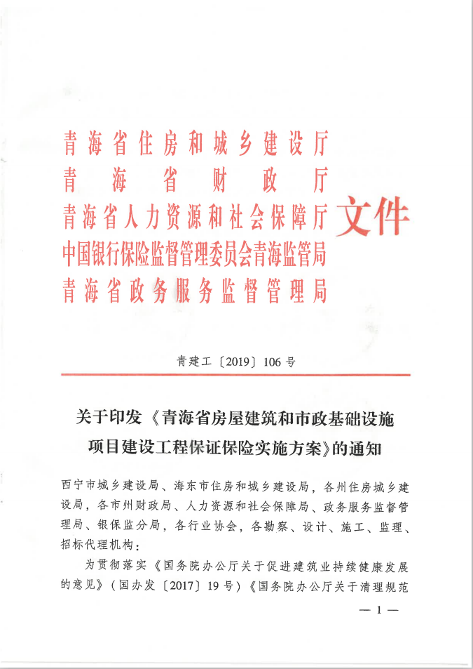 关于印发青海省房屋建筑和市政基础设施项目建设工程保证保险实施方案的通知