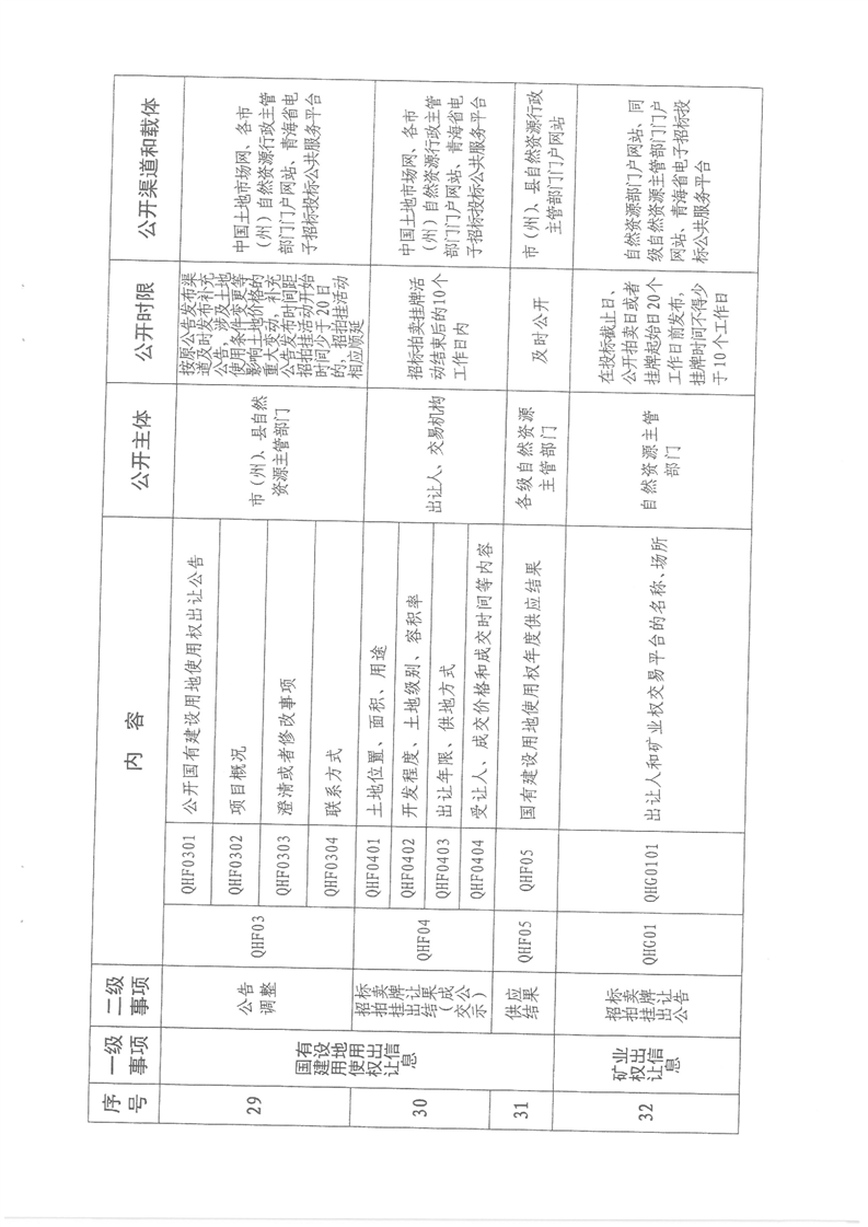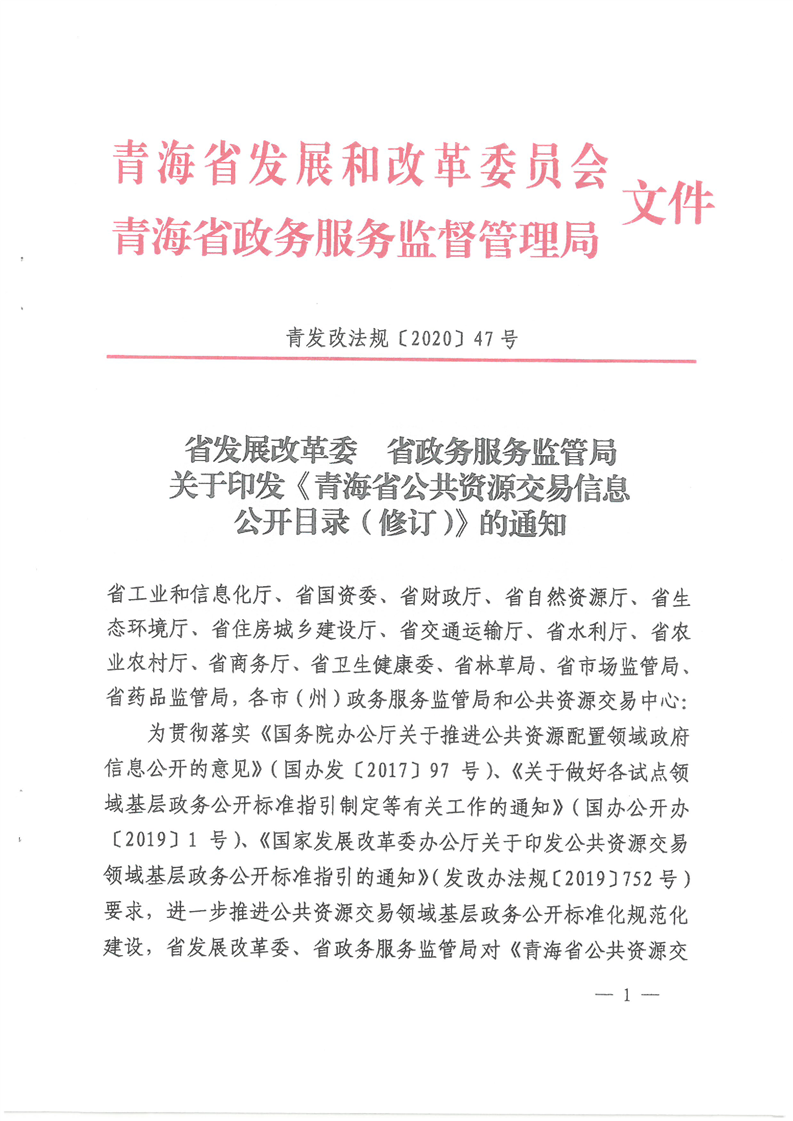 关于印发《青海省公共资源交易信息公开目录(修订)》的通知