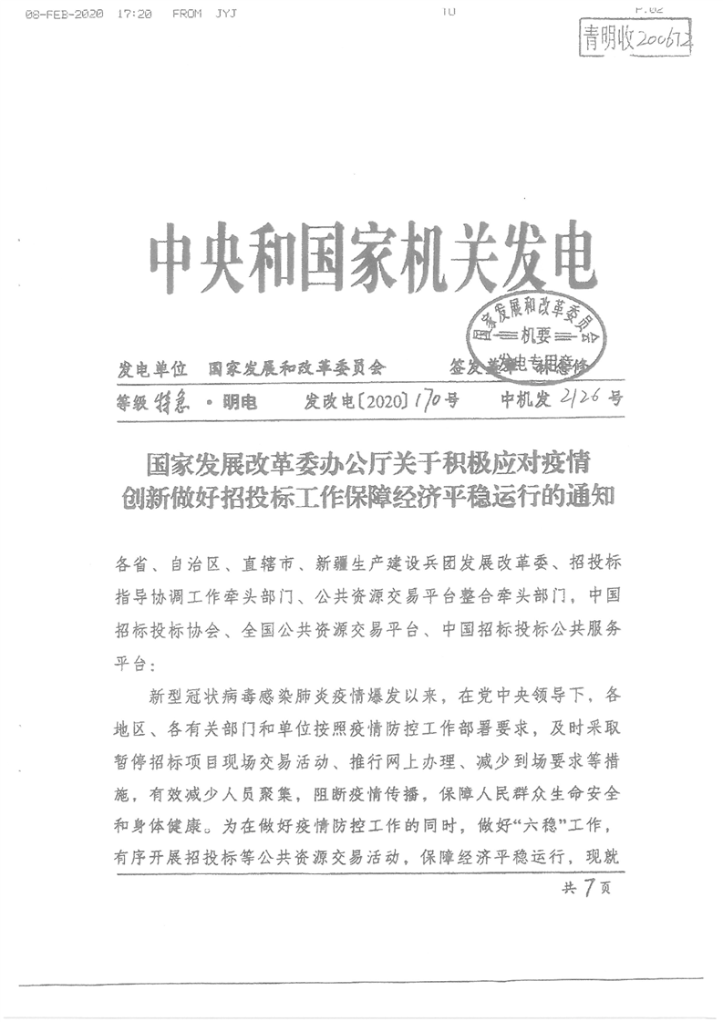 转省发展改革委、省政务服务监管局关于新型冠状病毒感染肺炎疫情防控期间创新做好公共资源交易工作的通知