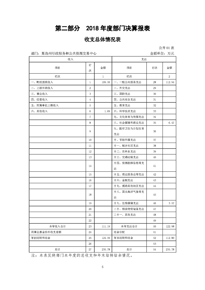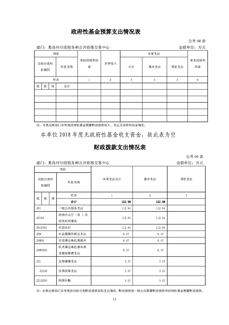 果洛州行政服务和公共资源交易中心2018年度部门决算