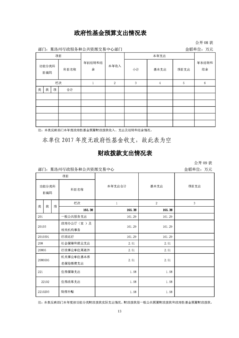 果洛州行政服务和公共资源交易中心2017年度部门决算
