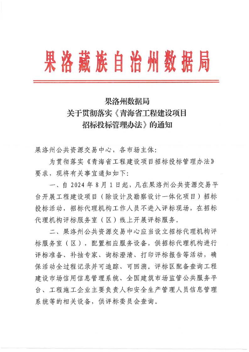 关于贯彻落实《青海省工程建设项目招标投标管理办法》的通知