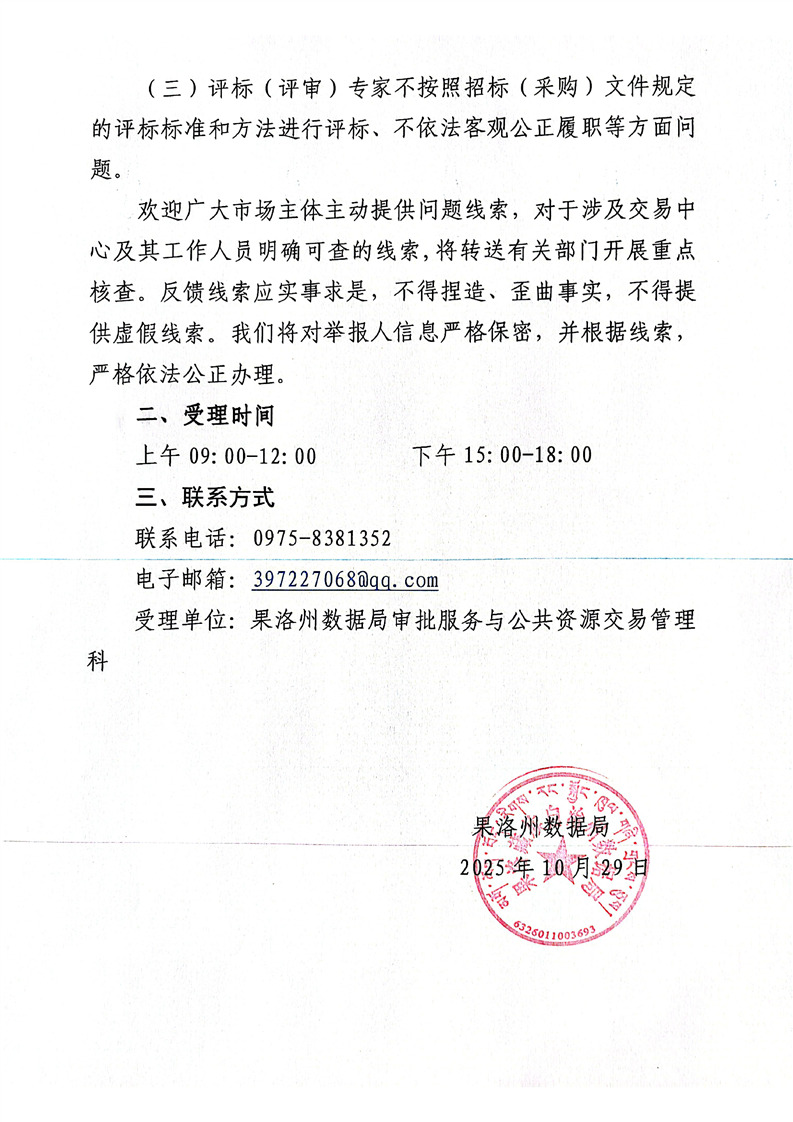 果洛州数据局关于征集公共资源交易中心问题线索的公告