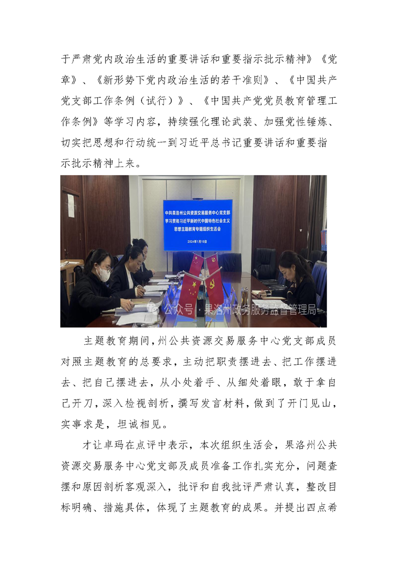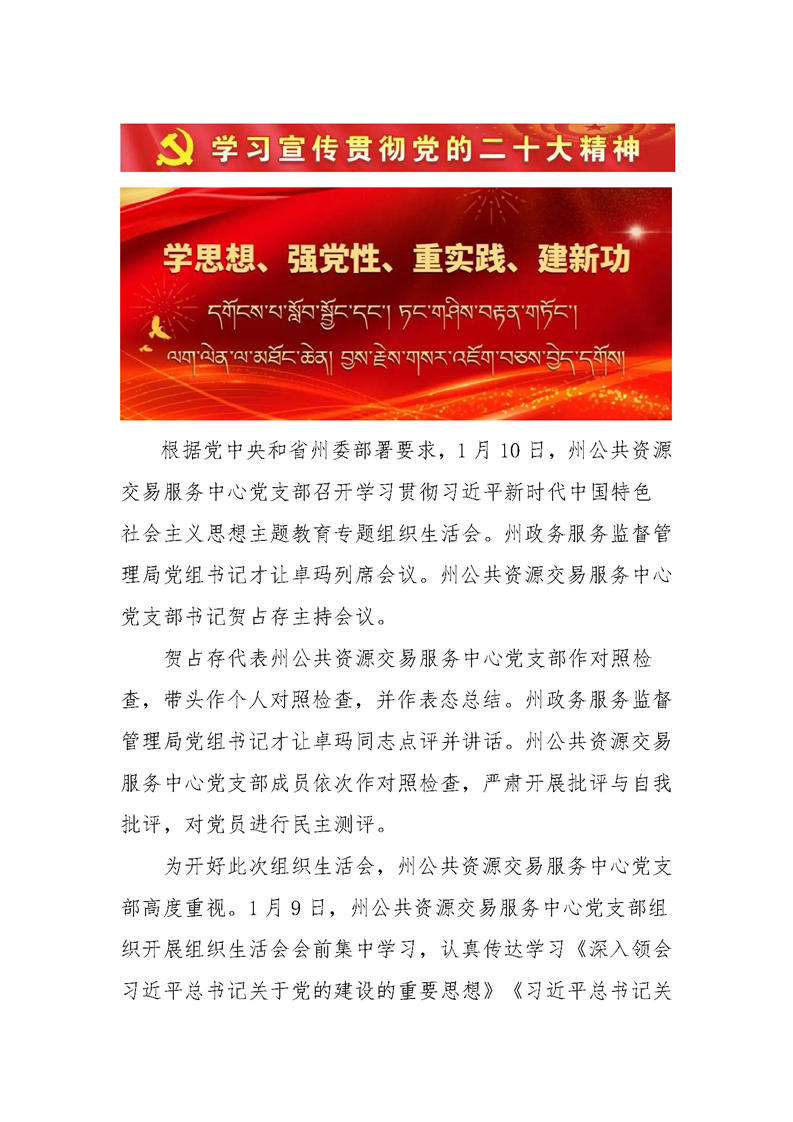 果洛州公共资源交易服务中心党支部召开学习贯彻习近平新时代中国特色社会主义思想主题教育专题组织生活会