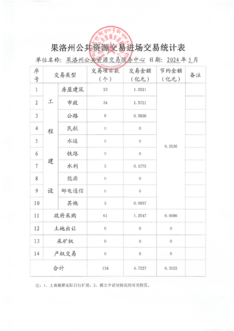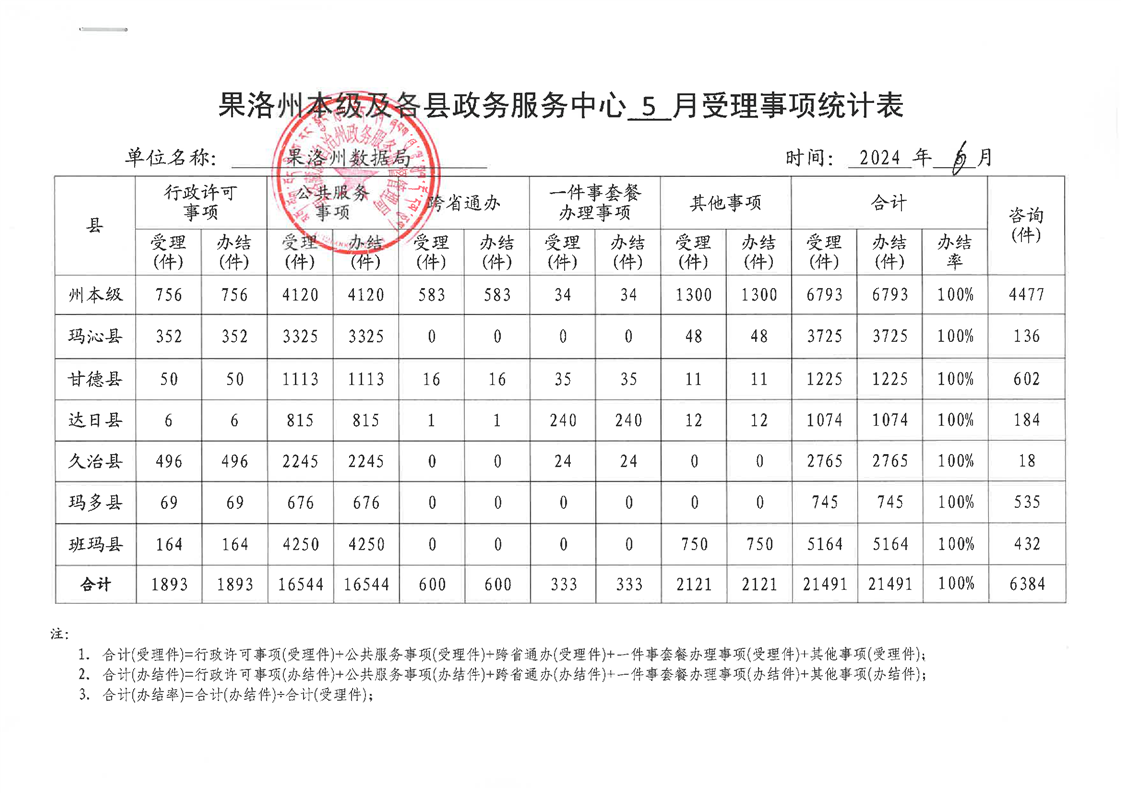 2024年05月份果洛州公共资源交易和政务服务办件情况