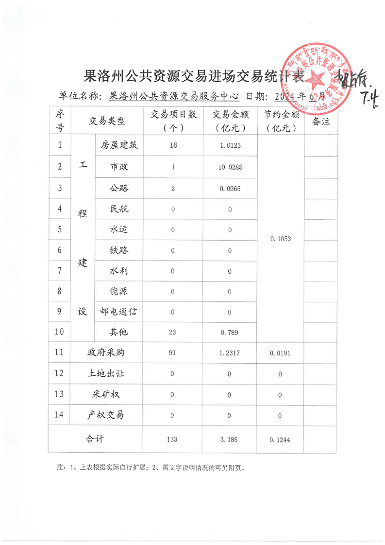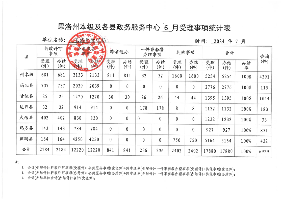2024年06月份果洛州公共资源交易和政务服务办件情况