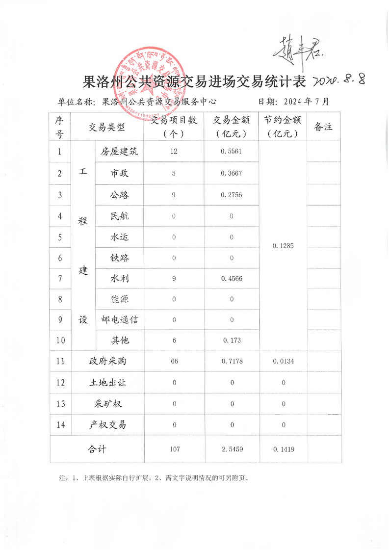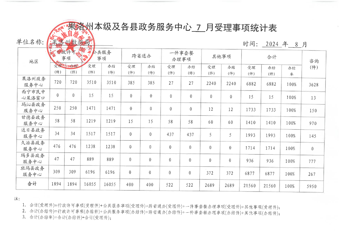2024年07月份果洛州公共资源交易和政务服务办件情况