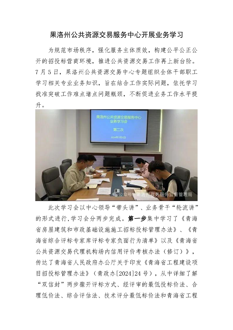 果洛州公共资源交易服务中心开展业务学习(第二次)