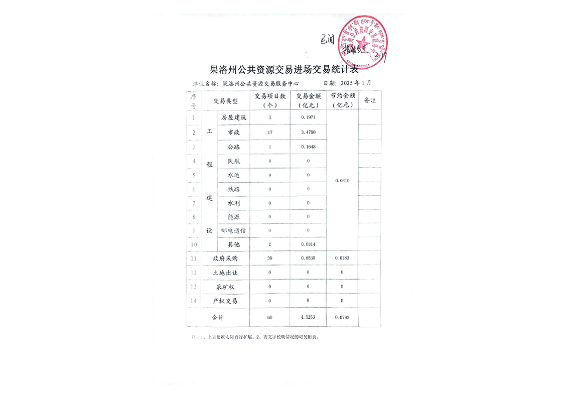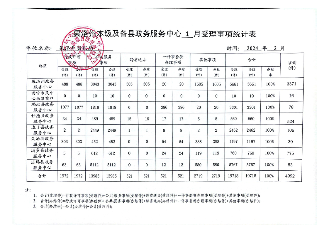 2025年1月份果洛州公共资源交易和政务服务办件情况