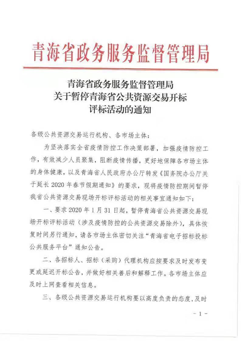 海北州政务服务监督管理局转发关于暂停青海省公共资源交易开标评标活动的通知